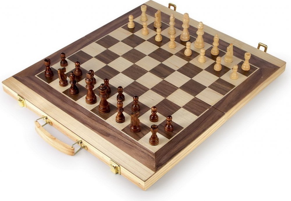 Šachy i vrhcáby jsou starobylé deskové hry, které stále nacházejí hodně svých nových příznivců po celém světě. Ve hře šachy Vám nepomůže náhoda, ale jen vaše schopnosti, znalosti pravidel hry, umění strategie a myslet pár tahů dopředu. Naučte své děti táhnout figurkami po šachovnici a uvidíte, že najdete skvělou společnou zábavu pro deštivá odpoledne. Stejnou službu Vám udělá i hra vrhcáby, která je jedna z nejstarších známých deskových her pro dva hráče, ve které hraje roli náhoda a štěstí. Kvalitně zhotovený dřevěný kufřík s rukojetí. Velké hrací kameny ze dřeva (3,8x 0,7cm) a velké figurky (3,5 až 7,5 cm) nechají malé i velké stratégy při šachu zapomenout na čas. Kufřík obsahuje kostky, postavičky šachu a kameny hry dáma. Na povrchu víka dřevěného kufříku je vykládaná šachovnice, kterou použijete ke hře tak, že otevřený kufřík rozložíte. Z vnitřní strany je hrací plán pro vrhcáby. Hlavní vlastnosti: rozvíjí logiku a strategické myšlenírobustní, kvalitní provedení v přírodních barvách