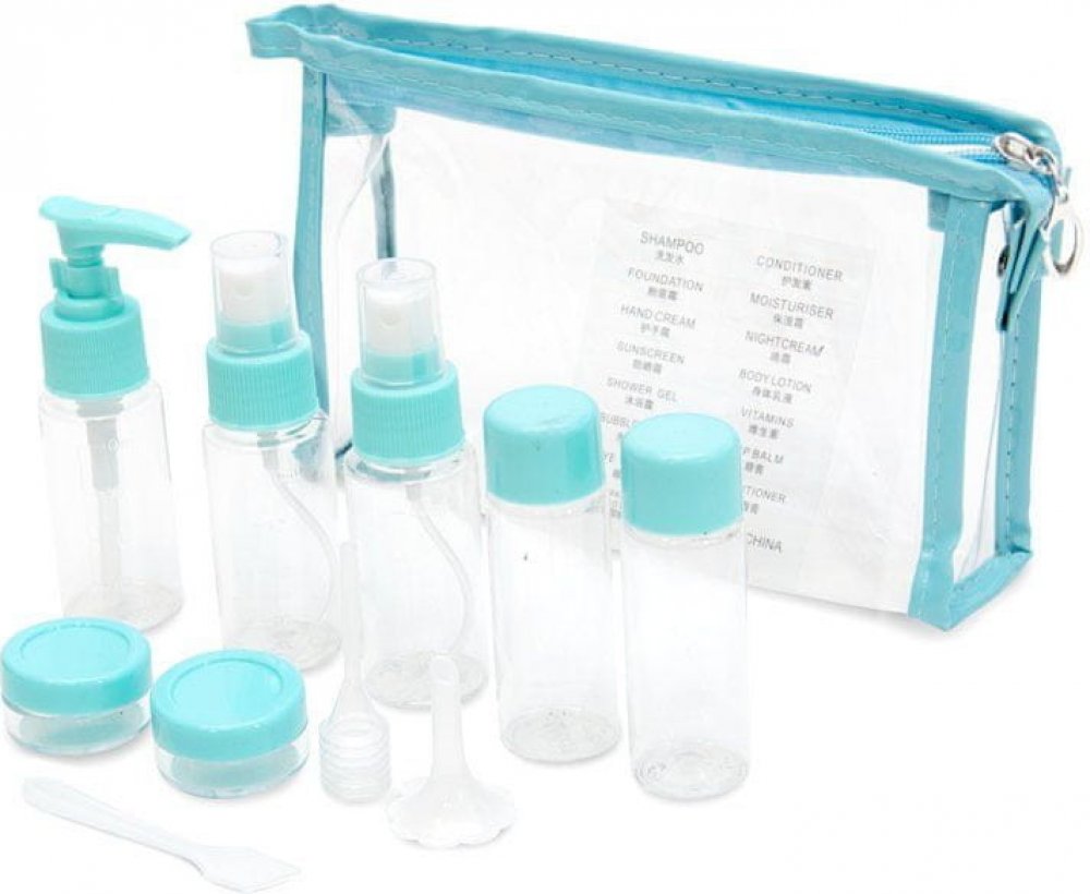 Cestovní lahvičky Kufryplus.cz TBK10 zamezí nutnosti brát si s sebou na cesty a dovolené celá balení kosmetiky. Sada obsahuje lahvičku s dávkovačem, 2 lahvičky s rozprašovačem, 2 lahvičky s uzávěrem, 2 nádobky, lžičku, kapátko a trychtýřek, které jsou uložené v praktické kosmetické taštičce. Využijete je na šampony, kondicionéry, sprchové gely i krémy. Pomocí trychtýřku jednoduše nalijete přípravk...