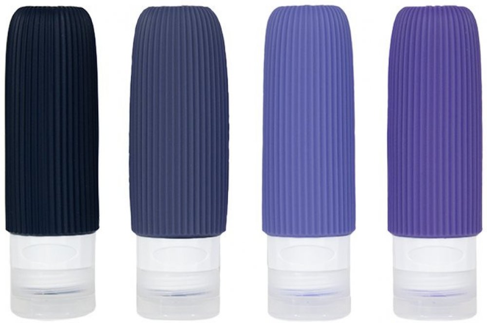 Cestovní sada 4 ks barevně sladěných silikonových lahviček je určena pro převážení různých kosmetických přípravků (šampónů, tělových mlék, sprchových gelů, tekutých mýdel apod.). Tělo lahviček vyrobeno z lehkého, měkkého a odolného silikonu. Šroubovací uzávěr z polypropylenu. Díky měkkému materiálu lahviček se z nich přípravky velmi snadno dávkují. Široký otvor hrdla lahviček umožňuje pohodlné pl...