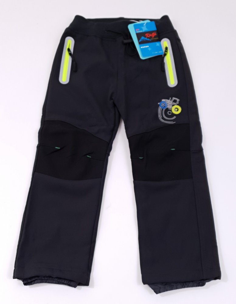 Dětské softshellové - outdoor kalhoty Kugo, vnitřní strana příjemný teplounký fleece + na vnitřní straně nohavice ve spodní části šusťáková nohavice ukončená gumkou. Materiál:100% polyester.
