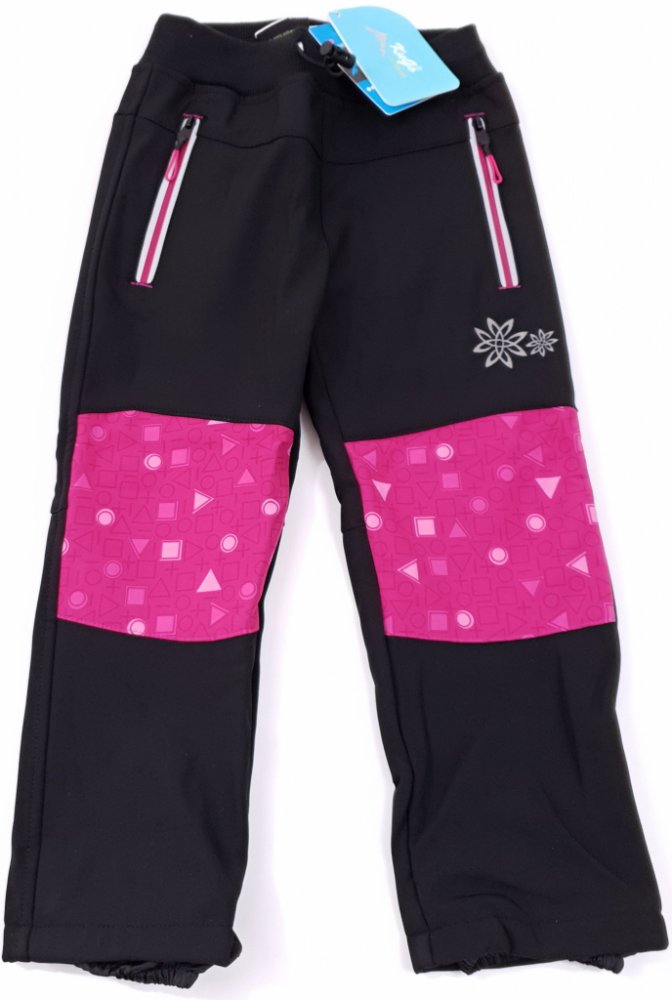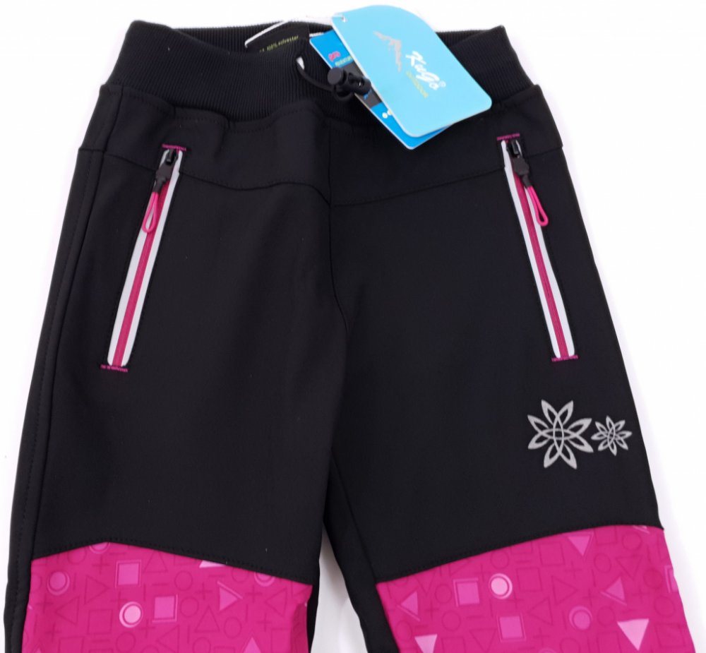 Kugo dětské oteplené softshellové kalhoty černá růžová