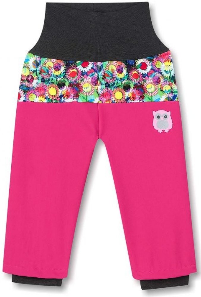 Dívčí kojenecké zateplené softshellové kalhoty s širokým úpletem v pase a na nohavicích. Motiv sovička.