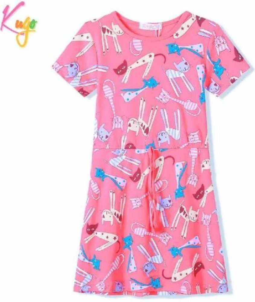 Dívčí bavlněné šaty KUGO s obrázky kočiček. Šaty jsou s krátkým rukávem a v pase je šňůrka na stažení protažená tunýlkem. Šaty jsou střižené do "áčka".