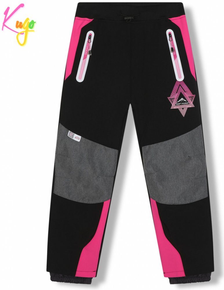 Dívčí softshellové kalhoty, zateplené - KUGO HK5620, černá / růžové zipy Barva: Černá, Velikost: 128