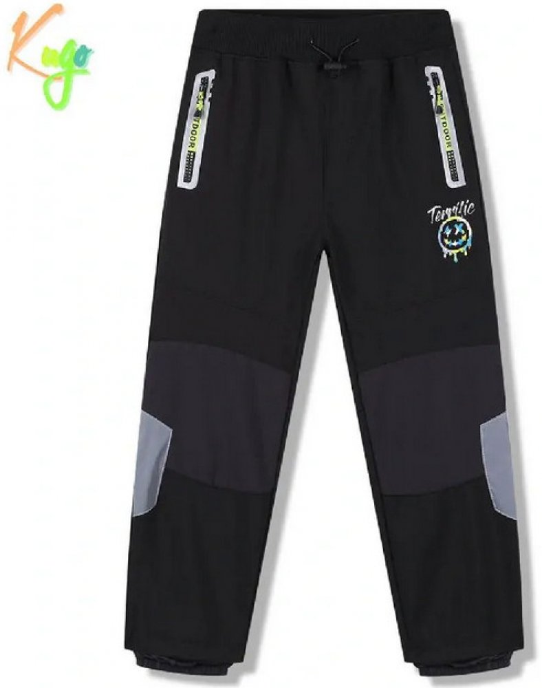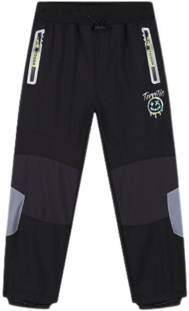 softshellové kalhoty, odolné proti větru a vodě (vodoodpudivá - tzn. voda po nich stéká), z rubové strany je síťovina, v pase jsou do gumy, dvě kapsy na zip, v nohavici je návlek.