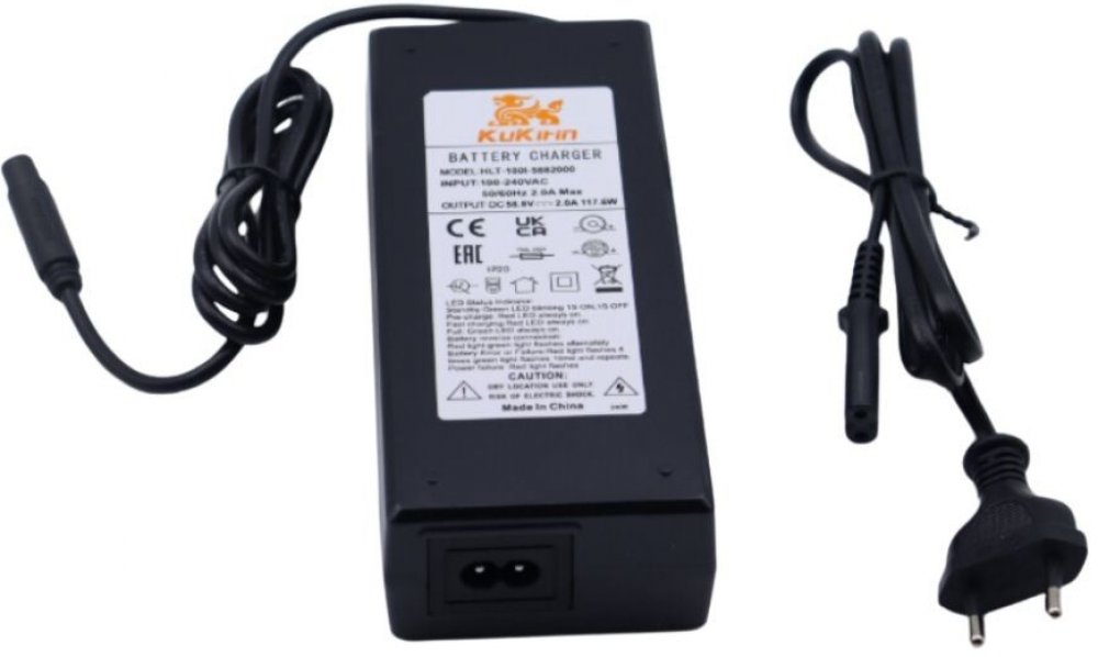 Tato originální nabíječka je navržena přímo pro elektrokoloběžku Kukirin G2Master s tenkým konektorem. Výstupní napětí nabíječky: 58,8V a nabíjecí proud 2A garantují efektivní a bezpečné nabíjení baterie elektrokoloběžky.
