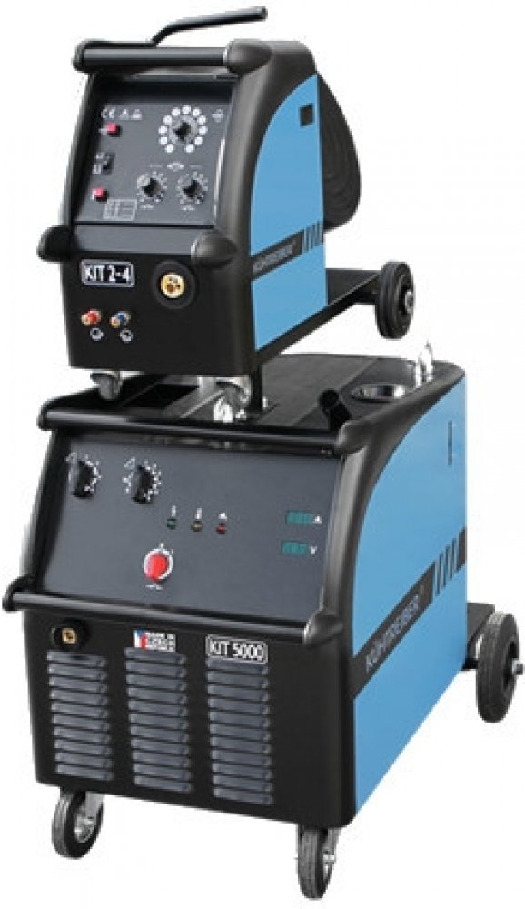 * KIT 5000 WS je profesionální průmyslový svařovací stroj MIG/MAG s výkonným transformátorem. * Je vybavený snímatelným podavačem drátu s robustním a výkonným čtyř kladkovým posuvem a EURO konektorem. * Maximální délka propojovacího kabelu může být více jak 20 m. * Stroje jsou vybaveny výkonným vodním chlazením svařovacího hořáku. * Hlavní předností jsou vynikající svařovací vlastnosti, 40 stupňová regulace napětí, variabilnost provedení, vysoký výkon, vysoké zatěžovatele, robustní provedení a spolehlivost. * Stroje najdou uplatnění v těžkých průmyslových provozech, kovovýrobě, zámečnictvích a údržbách. • VYBAVENÍ • * Snímatelný podavač drátu KIT 2-4 E W se 4 kladkovým posuvem (kladky pro drát 1,0 – 1,2 mm) * Propojovací kabel zdroj – podavač, délka 2 m * Digitální voltampérmetr * 2 takt / 4 takt * Burn Back * Easy Use * Předfuk / dofuk plynu * Spot Puls * Feed Back * Generátor * Test Gas * Okruh pro kapalinové chlazení svařovacího hořáku