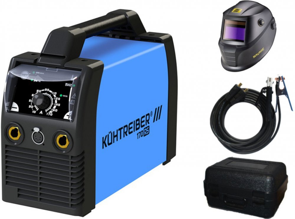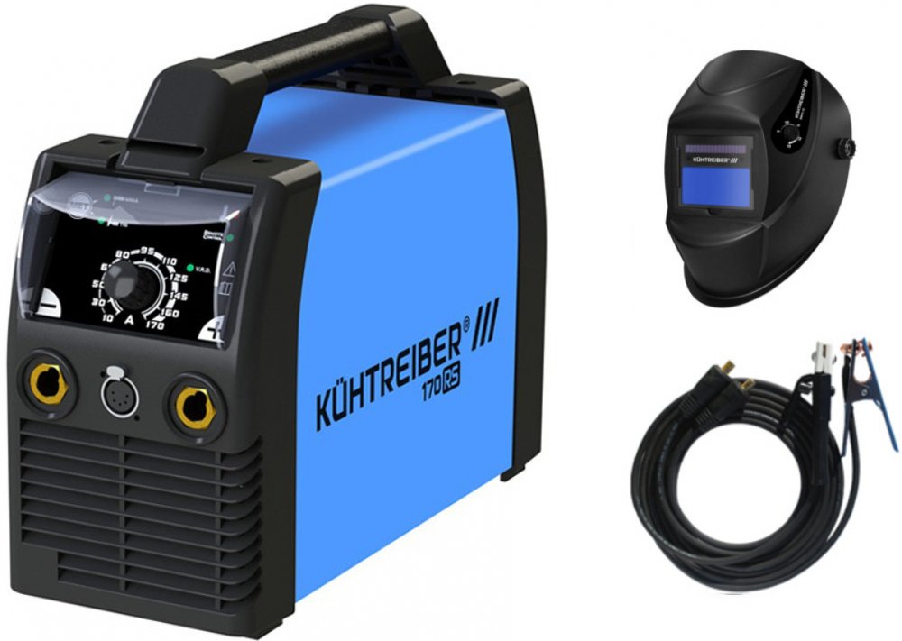 Invertorová svářečka pro metody MMA (obalená elektroda) a TIG DC. 1 x 230 V. Proud 10 - 170 A. Zatížení 170 A/60 %. HOT START, ARC FORCE, ANTI STICK, VRD, LIFT ARC. Připojení kabelů 35-50.