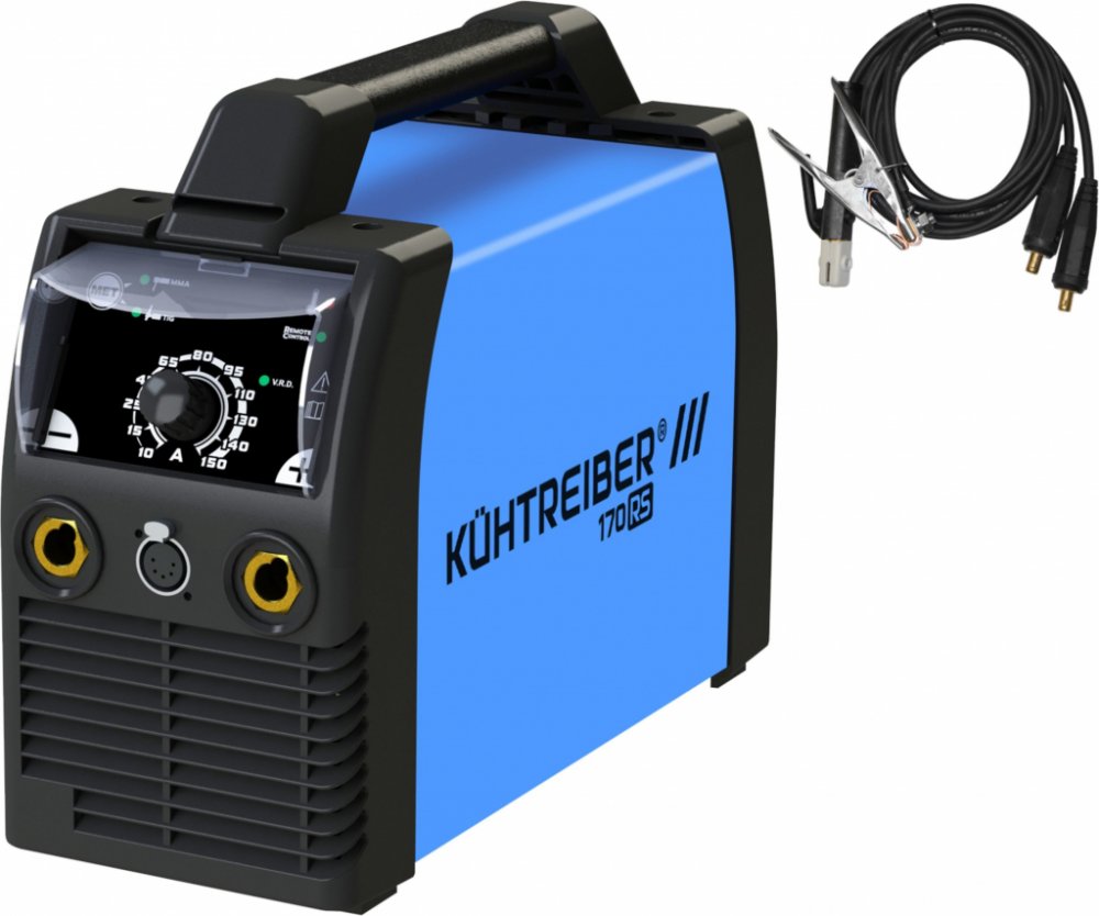 Invertorová svářečka pro metody MMA (obalená elektroda) a TIG DC. 1 x 230 V. Proud 10 - 170 A. Zatížení 170 A/60 %. HOT START, ARC FORCE, ANTI STICK, VRD, LIFT ARC. Připojení kabelů 35-50. Akční set se svařovacími kabely H01N2-D v gumě.