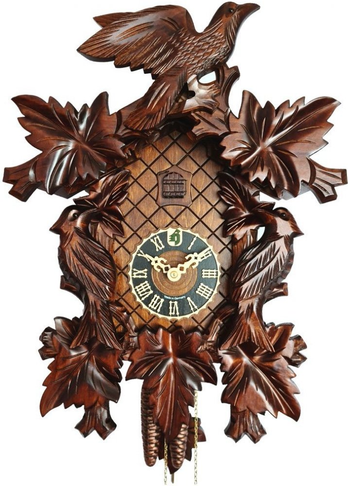 Kukačky od špičkového německého výrobce Hones ze Schwarzwaldu.- Mechanické 1-denní- Materiál lipové dřevo- Ručně vyřezávané- Kukání v půl - 1x, v celou - podle počtu hodin- Kukání lze vypínat páčkou z boku- Výška: 48 cm (měřeno bez kyvadla a šišek)