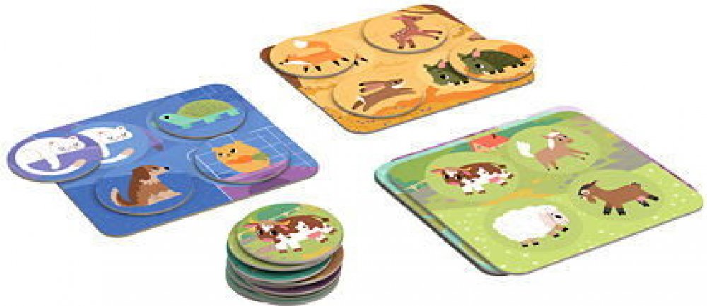 Položte hrací desku a žetony. Dítě má za úkol přiřazovat žetony na správná místa – nejdříve jednoduše, pak se zvyšující obtížností. Pojmenujte společně prostředí: dům, les, pastvina, rybník, koruna stromu, louka. Povídejte si, která zvířátka kam patří – a proč právě tam.
