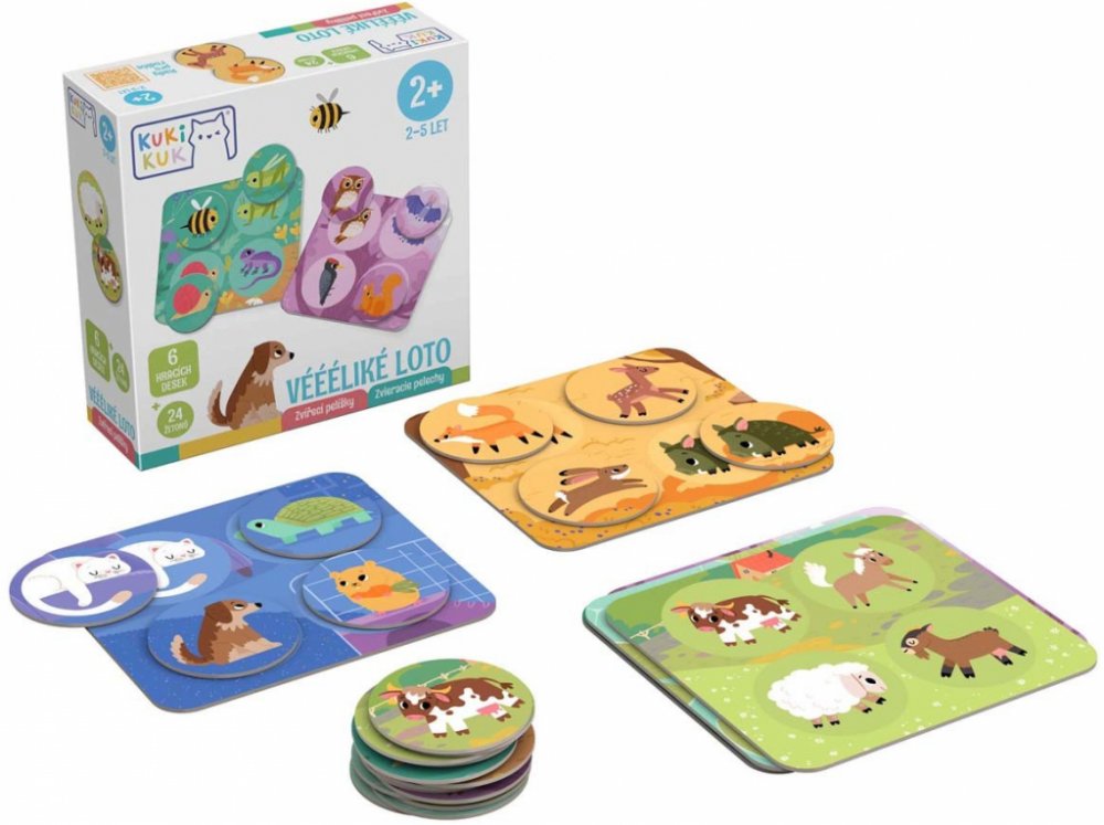 Kukikuk Zvířecí pelíšky přináší dětem zábavné poznávání světa zvířat prostřednictvím hry, pohybu a fantazie. Díky hracím deskám a žetonům se děti učí rozpoznávat zvířátka, jejich prostředí i zvuky – a přitom si rozvíjejí slovní zásobu, logiku a pozornost.