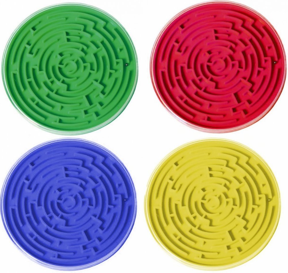 Plastový labyrint s naznačenou dráhou pro malou kuličku. - balanční labyrint pro trénink šikovnosti a trpělivosti - naklápěním proveďte kuličku od okraje do středu a zase zpátky - průměr labyrintu 8,5 cm Poznámka: Barevné provedení dodáváme dle skladových zásob.