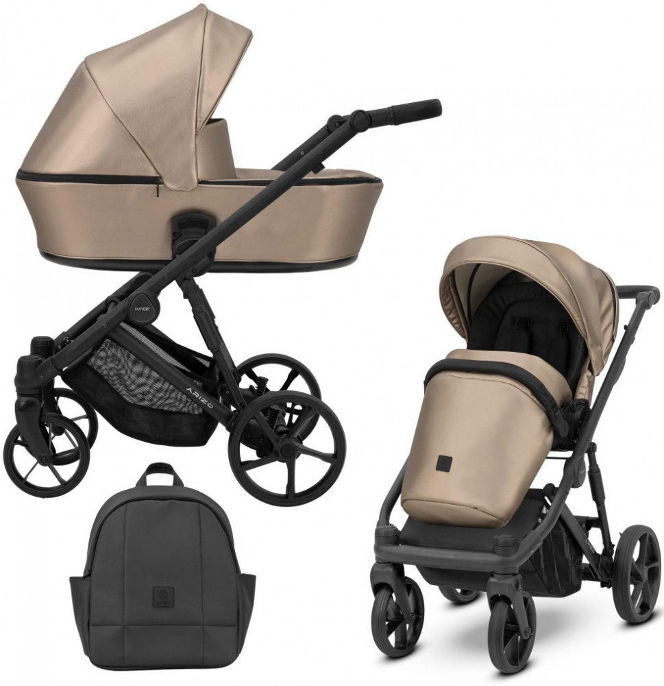 Kočárek Arizo je lehký a přitom navržený s ohledem na pohodlí vašeho dítěte a komfort pro vás. Nezapomněli jsme ani na moderní design. Trojrozměrný zlatý nebo černý rám, karbonová rukojeť, stylová kolečka a elegantní batoh vám jistě zpříjemní procházky.Potah je vyroben z ECO kůže. NosítkoBezpečná chůze za každého počasíKočárek Arizo je ideální do každého počasí. Je vybaven větracím panelem, který se zapíná na zip a zajišťuje optimální proudění vzduchu v korbičce. Toto řešení je ideální jak během horkých letních dnů, tak v chladnějších měsících. Správným odvětráváním kočárku chráníte své dítě před přehřátím v horkém počasí a zajišťujete mu dostatek ventilace a čerstvého vzduchu.Kočárek je také vybaven ochranou proti slunečnímu záření UV50, která je všitá do stříšky přenosné postýlky. Bez ohledu na intenzitu slunečních paprsků je vaše dítě účinně chráněno před škodlivým UV zářením. Tento inovativní prvek nejenže pečuje o zdraví vašeho děťátka, ale také eliminuje potřebu používat další slunečníky nebo sluneční clony.Měkká matrace a vnitřek přenosné postýlkyVnitřek přenosné postýlky je vybaven matrací a její boky jsou čalouněny měkkým materiálem - to zaručuje vašemu děťátku klidný spánek a bezpečí na každé procházce. Vnitřní vrstvu přenosné postýlky na zip lze snadno vyjmout a vyprat.KočárekKočárek Arizo můžete namontovat po i proti směru jízdy. Vaše děťátko může být buď čelem k vám (v takovém případě na něj můžete volně mluvit a udržovat oční kontakt), nebo se může dívat na své okolí zepředu (jak roste a více se zajímá o svět kolem sebe). Pohodlí- Zádovou opěrku kočárku můžete snadno nastavit do čtyř poloh. Od polohy vleže, která je pro spící dítě nejpohodlnější, až po úplně vzpřímenou polohu - jakmile bude vaše děťátko pohodlně sedět samo.- Díky nastavitelné opěrce nohou v kočárku nevisí nožičky batolete volně. Je také užitečná během spánku - prodlužuje sedadlo, takže je pro vaše dítě mnohem pohodlnější spát. Pro všechna roční obdobíNáš kočárek můžete používat za jakéhokoli počasí. Potah na nohy zajistí teplo a pohodlí i v chladnějších dnech a větrací okénko ve stříšce kočárku zajišťuje volné proudění vzduchu a udržuje uvnitř ideální teplotu. BezpečnostKočárek je vybaven 5bodovými bezpečnostními pásy, které si vaše dítě nebude moci samo rozepnout, a zábranou. Tyto prvky zajišťují dítě na místě a chrání před vypadnutím, takže se nemusíte bát o bezpečnou cestu. Přídavná matraceKočárek Arizo je dodáván s extra měkkou matrací, která vašemu dítěti zajistí větší pohodlí. Matraci lze snadno vyjmout a vyprat.Skládání a rozkládáníDětský kočárek Arizo je navržen tak, aby vám usnadnil cestování a skladování doma.Intuitivní systémy skládání a rozkládání znamenají, že kočárek lze rychle připravit k použití nebo složit, když není potřeba.Díky chytrým paměťovým tlačítkům můžete kočárek a autosedačku rozložit bez námahy jednou rukou. Jedním pohybem pak můžete složit rám do kompaktní velikosti, a to i společně s kočárkem. Kočárek Arizo je také vybaven inovativním systémem rychlého skládání, který umožňuje složit kočárek na plocho. Stačí několik pohybů a kočárek se rozplácne na plocho, což vám umožní uložit jej do auta nebo skříně. Konstrukce:- Konstrukce je vyrobena z lehkého, ale pevného hliníku, díky čemuž je kočárek obratný a snadno ovladatelný.- Dopřejte svému děťátku klidný spánek díky vyspělému systému tlumení nárazů, který se skládá ze dvou částí: tlumení zadních kol a přídavného bočního tlumení. Polstrování zadních kol vyrovnává hmotnost kočárku, takže se hladce řídí po hrbolatých cestách.Kromě toho je kočárek vybaven bočním tlumením nárazů, které lze snadno zapnout nebo vypnout pomocí jednoduchého mechanismu.Otočením tlumičů je kočárek pružnější a přizpůsobuje se povrchu vozovky, čímž snižuje otřesy, které vaše dítě pociťuje. Při chůzi po rovném chodníku je dobré boční odpružení vypnout.Bezpečnostní tyč na rukojetiBezpečnostní pásek na rukojeti zajišťuje, že kočárek neopustíte z ruky, když jste nepozorní. Bezpečnost vašeho dítěte je pro nás prioritou, a proto naše řešení zajišťují, že budete mít kočárek plně pod kontrolou i v obtížných podmínkách.- Díky předním kolečkům o průměru 19 cm a zadním kolečkům o průměru 26 cm si kočárek dokonale poradí s různými povrchy.Pohybujte se bez obav na chodnících, polních cestách nebo i v náročném terénu. Rukojeť vyrobená z materiálu s karbonovou strukturou je nastavitelná, takže ji můžete snadno přizpůsobit své výšce, a protiskluzový povrch zajišťuje pevné uchopení i při dlouhých procházkách.Košík s kapsamiV balení s kočárkem obdržíte košík vybavený dvěma kapsami, které jsou ideální pro uložení fólie nebo moskytiéry. Košík vám umožní nejen vzít s sebou vše potřebné na procházku a hračky, ale je také ideální na nákupy.Příslušenství kočárku Arizo- Velký a módní batoh - prostorný, z ekokůže, snadno se čistí. Můžete jej připevnit k rámu kočárku nebo jej nosit na zádech. - Držák na láhev - držák na láhev ke kočárku je praktickým doplňkem, který usnadní život každé mladé rodině. Tento praktický držák je speciálně navržen tak, abyste měli láhev vašeho dítěte na dosah během procházek nebo výletů. Můžete jej snadno připevnit na rukojeť kočárku, čímž získáte bezpečné místo pro uložení lahvičky nebo hrnečku s pitím vašeho děťátka.- Pláštěnka a mosky