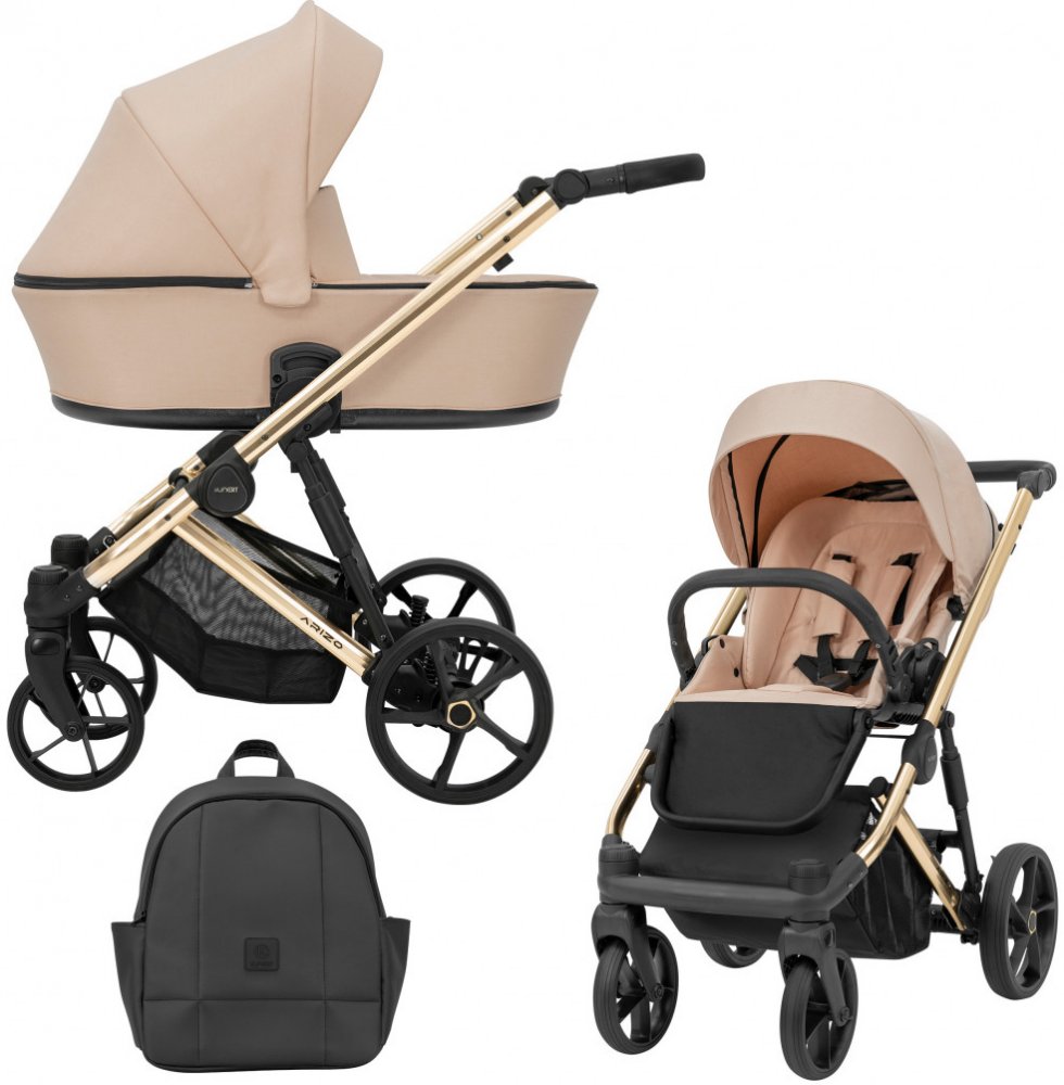 Nezapomenutelné procházky s kočárkem Kunert Arizo Premium: 2 v 1. Lehká a designová s funkcemi, díky kterým bude každá procházka jedinečná. Výběrem našeho kočárku se postaráme o pohodlí vašeho dítěte i vaše. Přijďte se podívat, kolik výhod získáte výběrem Arizo!Objevte nejdůležitější vlastnosti kočárku Arizo:Lehký design, pohodlí a stylKočárek Arizo je nejen lehký, ale také vybavený komfortem pro miminko. Jen věnujte pozornost:*Trojrozměrný design rámu ve zlaté nebo černé barvě, který dodává kočárku jedinečný, moderní vzhled.*Karbonová rukojeť, která zajišťuje odolnost a eleganci.*Stylová, pohodlná kolečka a elegantní batoh, díky kterým budou vaše procházky nezapomenutelné.Gondola – pohodlí a bezpečí za každého počasíBezpečné procházky s Kunert Arizo Premium jsou možné díky gondole, která:*Zajišťuje optimální proudění vzduchu** díky zipu a ventilačnímu panelu.*Chrání dítě před UV zářením** díky sluneční cloně UV50.*Zaručuje klidný spánek a bezpečí** díky měkké matraci a bokům pokrytým měkkým materiálem.Kočárek - pohodlí, bezpečnost a přizpůsobení se počasíKočárek Arizo je:*Nastavení opěradla ve čtyřech polohách zajišťující dostatečné pohodlí.*Nastavení opěrky nohou a přídavná matrace zvyšující pohodlí dítěte.*Lze nainstalovat po směru nebo proti směru jízdy a bezpečnostní pásy a zábrana chrání dítě.Navrženo pro každé roční obdobíProcházka s kočárkem Arizo Premium bude úspěšná bez ohledu na počasí díky:*Větrací okénko zajišťující proudění vzduchu uvnitř kočárku.*Návlek na nohy, který vás zahřeje v chladnějších dnech.*Nezávisle na intenzitě slunečního záření provoz sluneční clony.Skládání a rozkládání – intuitivní a rychléPříprava kočárku na cestování nebo jeho složení je rychlé a intuitivní díky:*Systém skládání a rozkládání jednou rukou.*Rychlý plochý skládací systém pro gondolu.*Lehký a odolný rám s odpružením zadních a bočních kol.Pohodlí pro rodičeKočárek Arizo Premium je pohodlný i pro rodiče díky:*Bezpečnostní popruh na rukojeti.*Nastavitelné rukojeti a protiskluzový povrch.Praktické doplňkyKočárek Arizo Premium dále nabízí:*Velký a módní batoh.*Držák na láhev.*Nepromokavá fólie a moskytiéra.Technická data:-Rozměry složeného rámu (délka x šířka x výška) - 70 x 59 x 33 -Hmotnost rámu: 8,2 kg-Rozměry rámu s gondolou (délka x šířka x výška) - 95 x 59 x 114-Hmotnost rámu s gondolou: 12,5 kg-Rozměry rámu se sedákem (délka x šířka x výška) - 95 x 59 x 107-Hmotnost rámu se sedlem: 11,6 kg-Vnější rozměry gondoly (délka x šířka x výška): 88 x 42 x 63-Vnitřní rozměry gondoly (délka x šířka x výška): 83 x 42 x 59-Hmotnost gondoly: 4,3 kg-Rozměry sedáku kočárku (délka x šířka x výška): 90 x 39 x 57-Hmotnost sedáku: 3,4 kg-Přední kola: 19’-Zadní kola: 26’Sada 2v1 obsahuje:-rám -korbička-sedačka do kočárku-nákupní košík-prostorný a módní batoh -měkká matrace -Moskytiéra-pláštěnka-držák na láhev