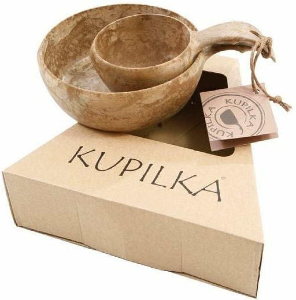 Sada Kupilka, která obsahuje hrníček a misku. Celá sada je vyrobena z materiálu Kareline®. Tento materiál je unikátní spojením vláken z borovicového dřeva a termoplastu v poměru 50:50. Spojuje výhody dřeva a plastu. Je nerozbitný, snáší teploty od -30°C do +110°C, je pevný a lehký. Rovněž neabsorbuje pachy z potravin, jednoduše se čistí a není citlivé vůči vlhkosti jako klasické dřevěné nádobí. Ba...