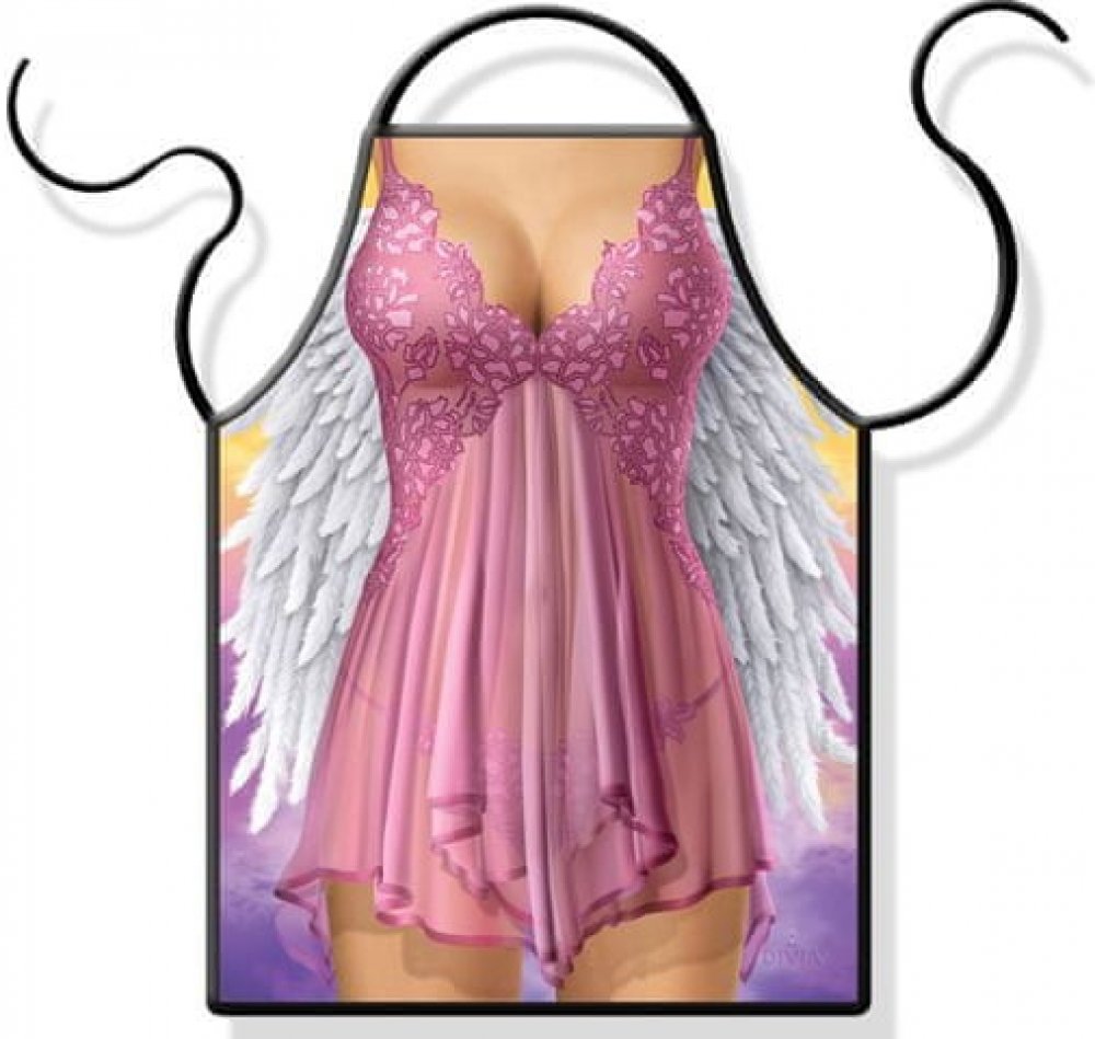 Přáli jste si někdy, aby Vaše partnerka vařila večeři v krásné noční košilce? Nic není nemožné. Darujte své partnerce tuto svůdnou zástěru anděl a nebudete se moci vynadívat. Sexy prádélko bude na Vaší partnerce vypadat neodolatelně, i když bude pod zástěrou oblečená. Vařte stylově a překvapte svého muže touto svůdnou zástěrou. Sexy zástěra potěší každou kuchařku. Zástěra anděl je originální dáre...