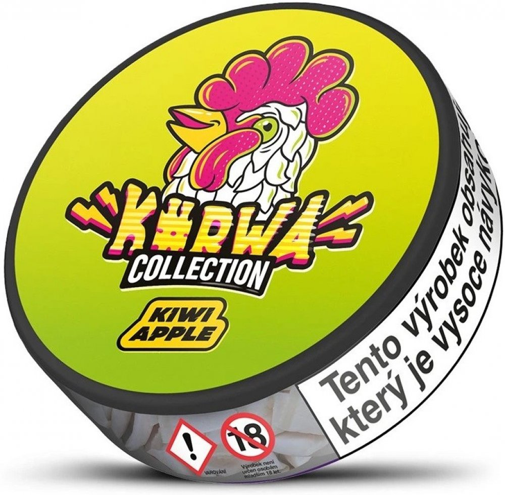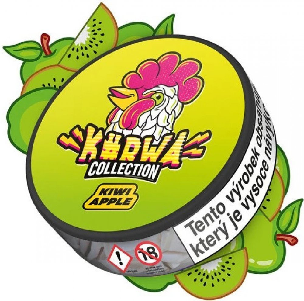 Nikotinové sáčky Kurwa Collection - Kiwi Apple Hard. Zažijte dokonalou ovocnou explozi s exotickou chutí kiwi a svěžím jablkem. Ideální pro každodenní relaxaci nebo jako doplněk k vašemu oblíbenému nápoji.