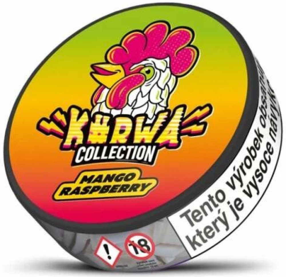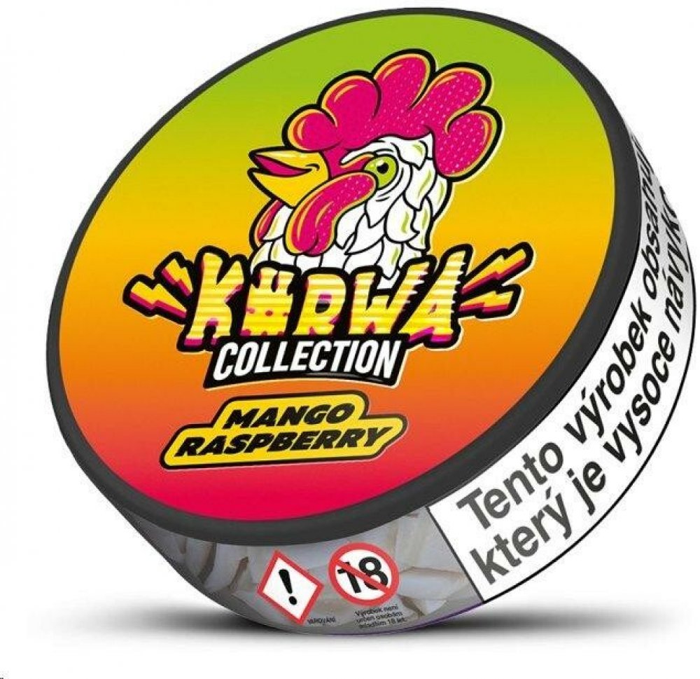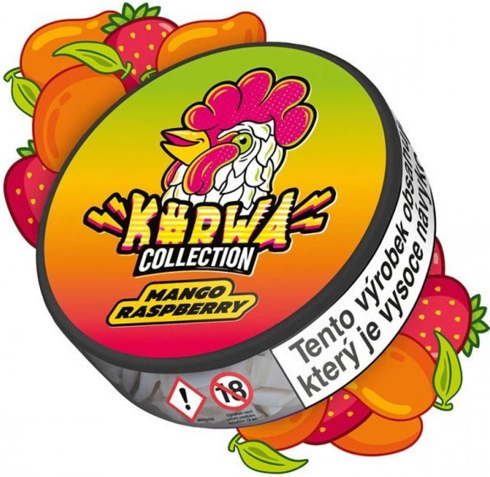 Nikotinové sáčky Kurwa Collection - Mango Raspberry. Tento výrobek nabízí jedinečnou chuťovou kombinaci šťavnatého sladkého manga a kyselých malin. Perfektní volba pro ty, kteří hledají něco jiného. Překvapivě osvěžující a zároveň silný zážitek.