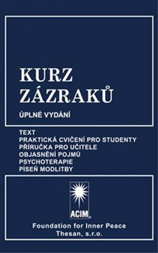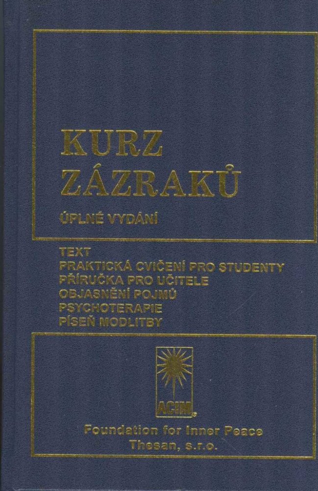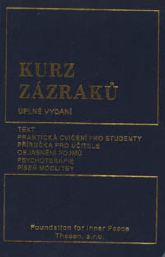 Toto je - v českém jazyce dosud jediné úplné - vydání Kurzu zázraků, které jeho pisatelé Dr. Helen Schucmanová a Dr. Bill Thetford schválili r. 1975 k vydání prostřednictvím nadace Foudation for Inner Peace. Jeho překlad je nyní dostupný ve 27 jazycích a je široce používán studenty v tisících studijních skupin po celém světě. Kurz zázraků je jedinečný myšlenkový a duchovní samostudijní program - je to kurz trénování mysli, který byl navržen pro odčinění iluze, že jsme jakýmkoli způsobem odloučeni od Boha nebo od druhých lidí. Na úrovni mysli jsme všichni spojeni jako jedno. Naučíme-li se žít tuto pravdu důsledně, strach, zlost a vina ustoupí hlubokému pocitu vnitřního klidu. Kurz nás systematicky vede k prožití Boží Lásky ve všech našich vztazích pomocí procvičování odpuštění (osvobození se od minulosti), ochoty přijmout a následovat vyšší vedení a rozvíjení stavu mysli zaměřené na zázraky. Štěstí, mír, radost a láska jsou přirozené výsledky učení Kurzu. Kurz se tedy zaměřuje na uzdravení vztahů. Zdůrazňuje, že je jen jednou z mnoha verzí univerzální učební osnovy. Ačkoli používá křesťanskou terminologii, pojednává o obecných duchovních tématech a spiritualitě. Kurz zázraků je univerzálním duchovním učením, jehož účelem je umožnit lidem nalézt svého Vnitřního Učitele. Kurz zázraků obsahuje tři samostatné části: "Text", "Cvičení pro studenty" a "Příručku pro učitele." V "Textu" je uvedena teorie Kurzu a jsou holisticky a v harmonické posloupnosti vysvětleny jeho hlavní myšlenky. "Cvičení pro studenty" obsahuje 365 lekcí, jednu pro každý den v roce. Procvičováním začíná proces změny studentova myšlení a vnímání. "Příručka pro učitele" je psána formou otázek a odpovědí na mnohá důležitá a praktická témata Kurzu. Toto vydání rovněž obsahuje hodnotné dodatky ke Kurzu: "Psychoterapie: účel, proces a praxe" a krásnou inspirující "Píseň modlitby."