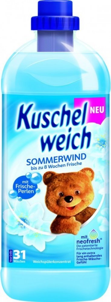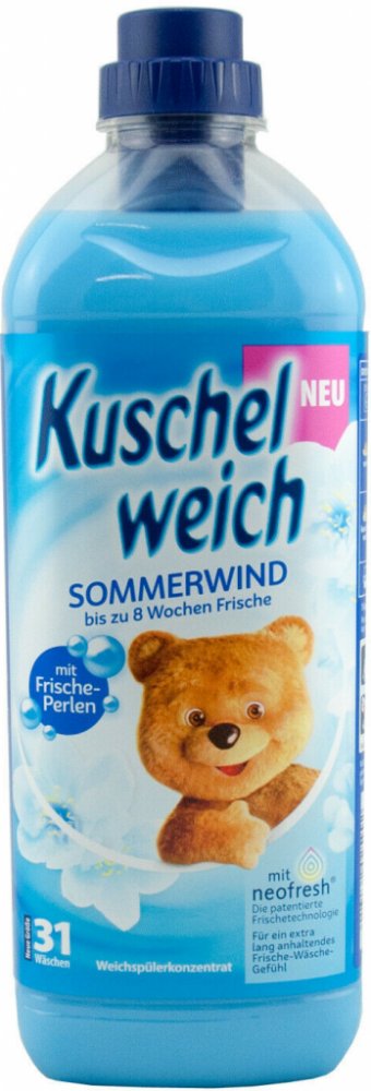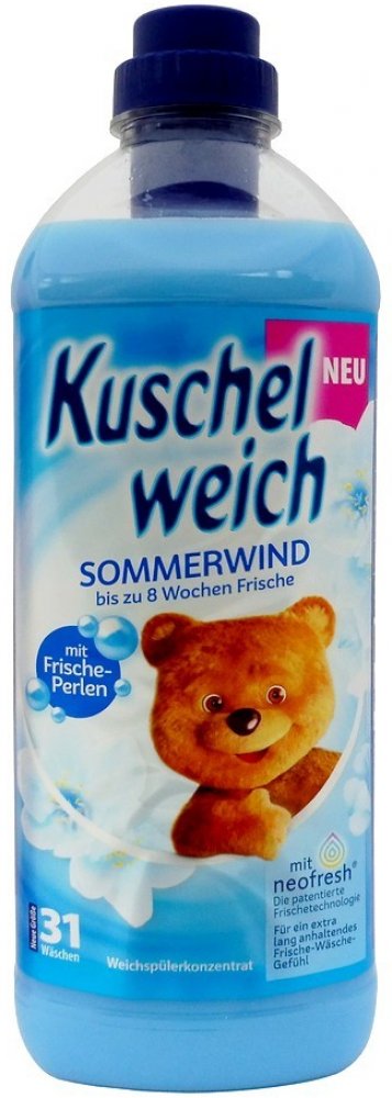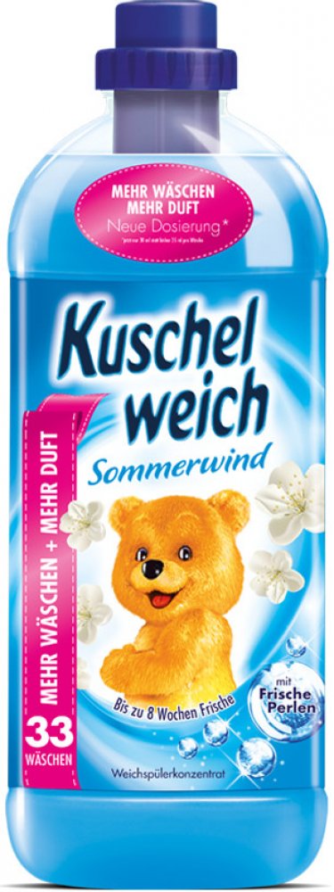 Kuschelweich Sommerwind (letní vánek) je koncentrovaná aviváž z Německa s příjemně svěží letní vůní, která vydrží dlouho po vyprání. Zanechává oblečení měkké na dotek a příjemně vonící. Zabraňuje žmolkování a většímu zmačkání. Aviváž není dráždivá a může být použit na praní dětského oblečení. Její šetrné složení bylo dermatologicky testováno.