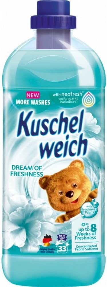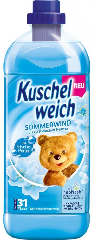 Koncentrovaná aviváž Sommerwind, s překrásně svěží, letní vůní po vyprání. Kuschelweich je oblíbená německá silně koncentrovaná aviváž. Oblečení zanechává měkké na dotek a krásně vonící ještě dlouho po vyprání. Zabraňuje žmolkování a většímu zmačkání. Má antistatické účinky. Výrobek není dráždivý a může být použit na praní dětského oblečení. Jeho šetrné složení bylo dermatologicky testováno. Aviváž s přírodně svěží vůní s postupně se uvolňujícími parfémy. Přitulte se k měkkému letnímu vánku na vašem prádle. Jedinečné perly dávají prádlu svěží vůni po dlouhou dobu. Dopřejte si chvíle plné plyšového rozmazlování. Objem: 1 l (34 pracích dávek). Značka: Kuschelweich. Výrobce: Unilever.