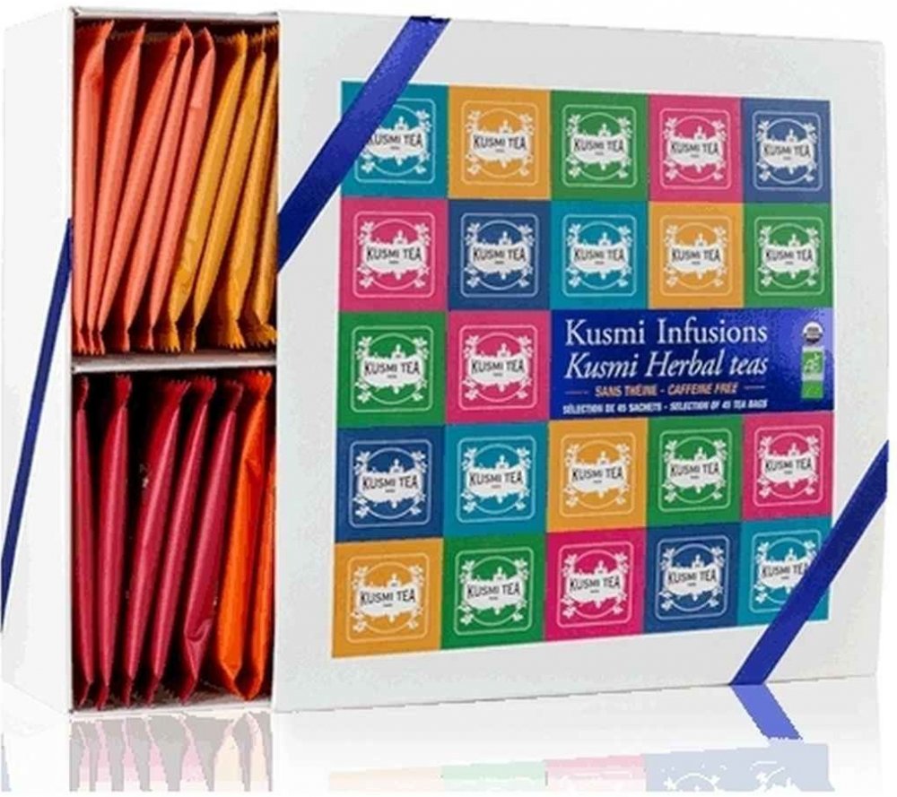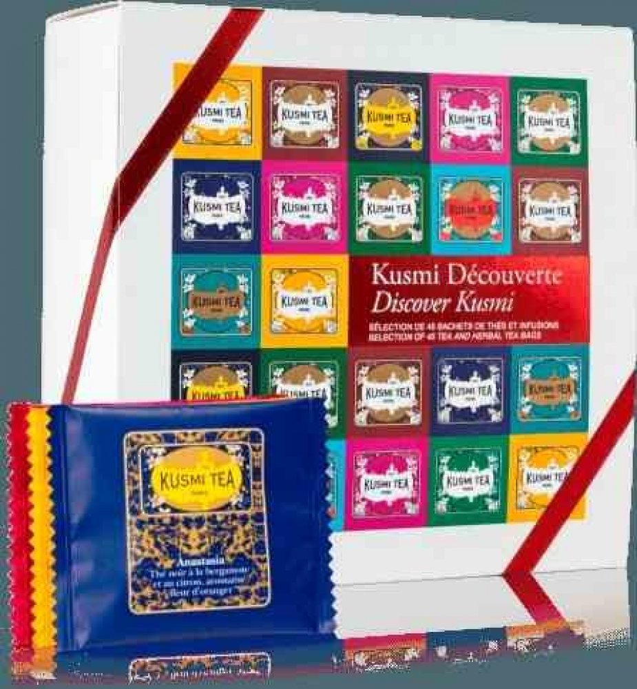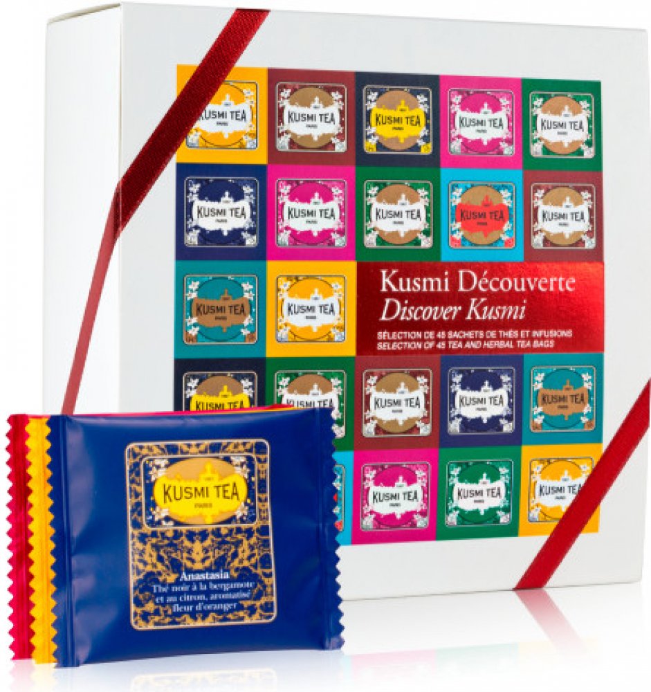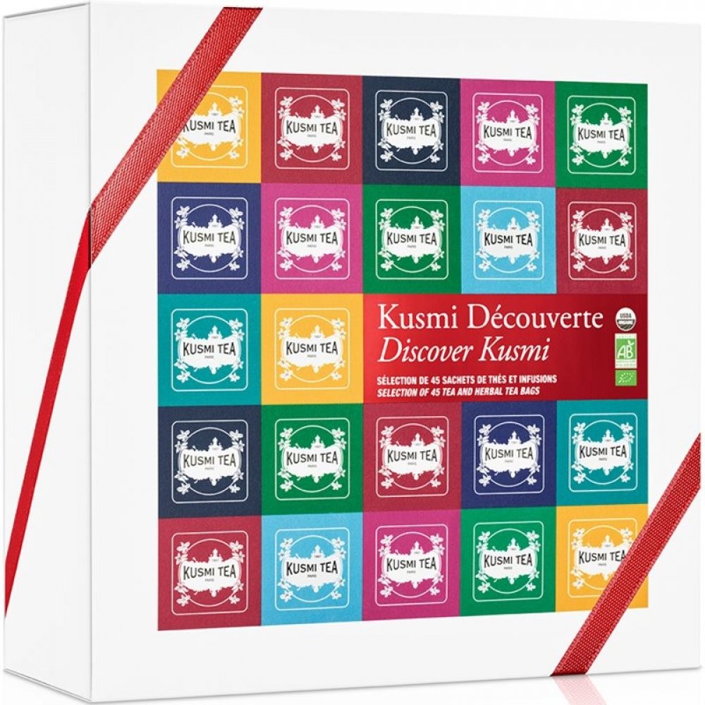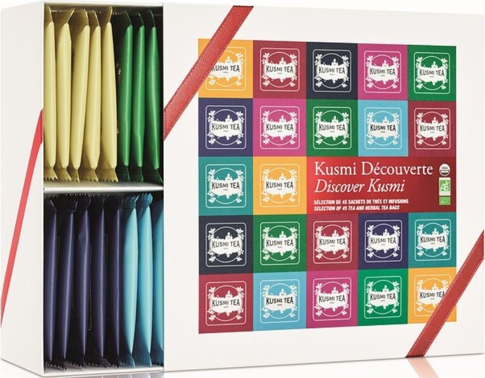 Balení obsahuje 45 samostatně balených sáčků - 5 kusů od každé z 9 nejoblíbenějších čajových směsí Kusmi Tea