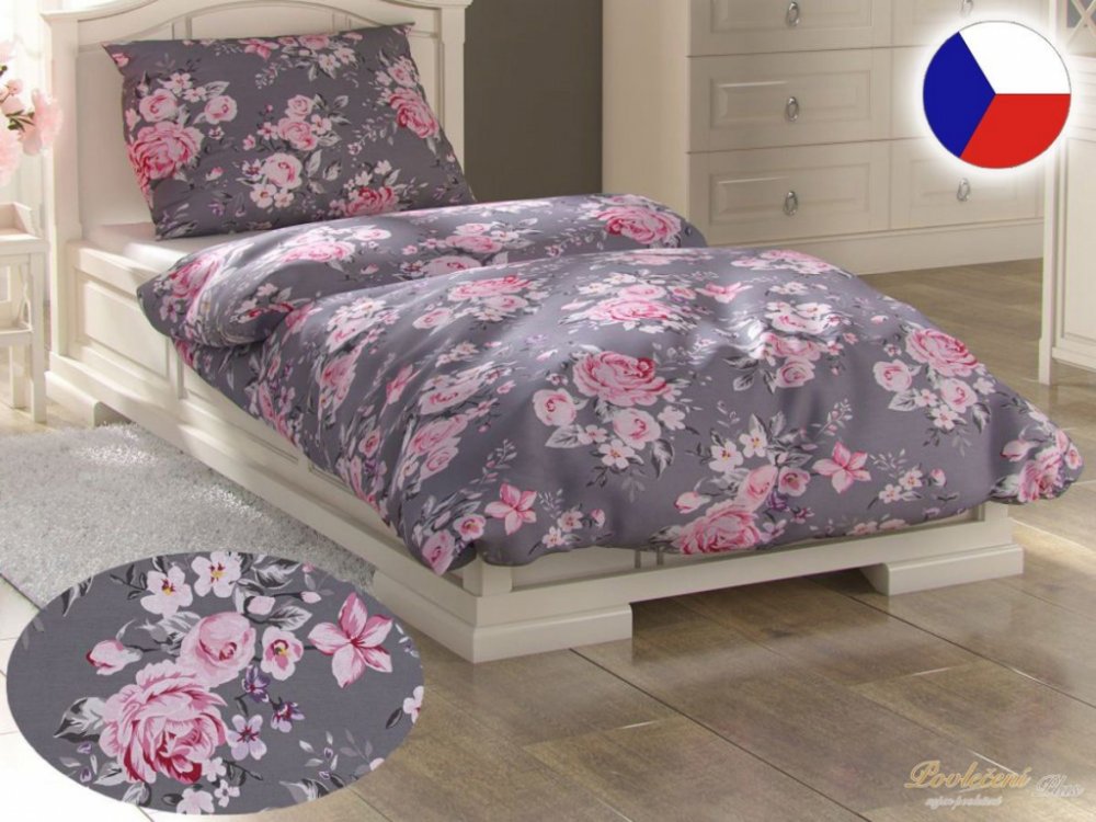 Kvalitex bavlněné 70 x 90 cm 200 x 200 cm zipové šedé 110 g/m2 květinové