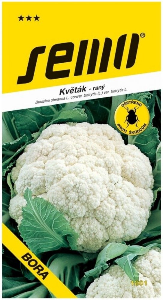 Květák jarní Bora je velmi raná odrůda pro nejranější jarní polní pěstování ze sadby. Růžice je střední, smetanově bílá, částečně zakrytá, o průměrné hmotnosti 370 g. Květák vyžaduje intenzivně vyhnojenou půdu s dostatkem vláhy.