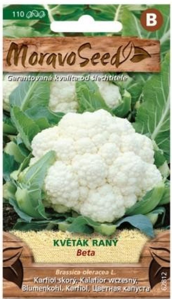 Květák raný Beta 110 ks Velmi raná odrůda pro studené rychlení a nejranější polní pěstování. Vytváří bílou středně hrbolovitou růžici odolnou proti fialovění. Vegetační doba od výsadby je 58-65 dnů.