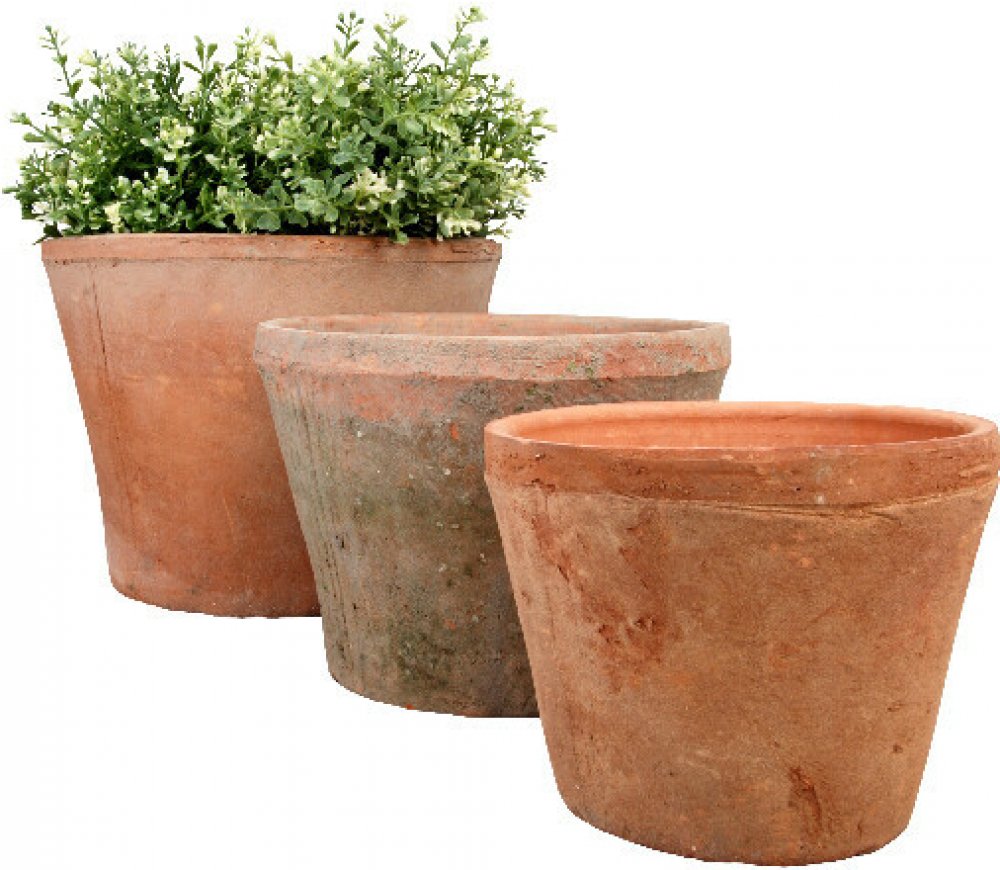 Set 3 ks květináčů různých velikostí. Ruční výroba dodává těmto terakotovým výrobkům originální neopracovaný vzhled. V přírodní barvě.