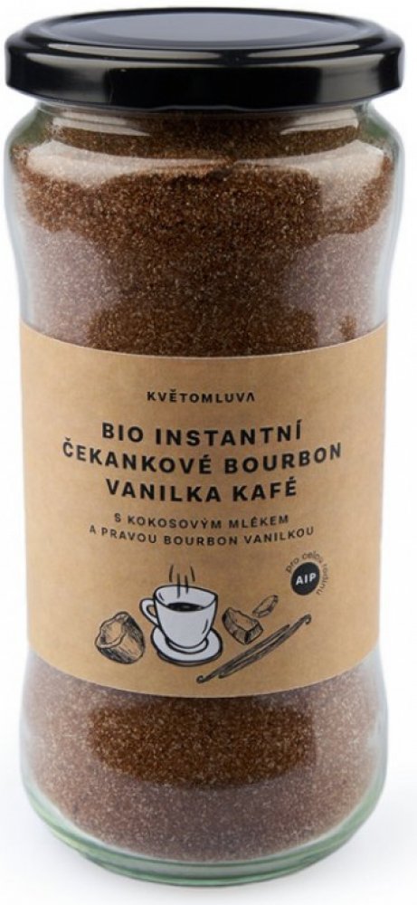 Výborná, zdravá náhrada kávy. Exkluzivní, lehce rozpustná kávovina ze 100% bio čekankového kořene, sušeného kokosového mléka a nejkvalitnějších jemně namletých lusků bourbonské vanilky. Vše v bio kvalitě. Jedinečná, luxusní chuť a vůně pro výjimečné zážitky s rodinou, přáteli nebo pro chvíle vlastního odpočinku. Výborná, zdravá náhrada kávy. Vhodná i při speciální dietě AIP.