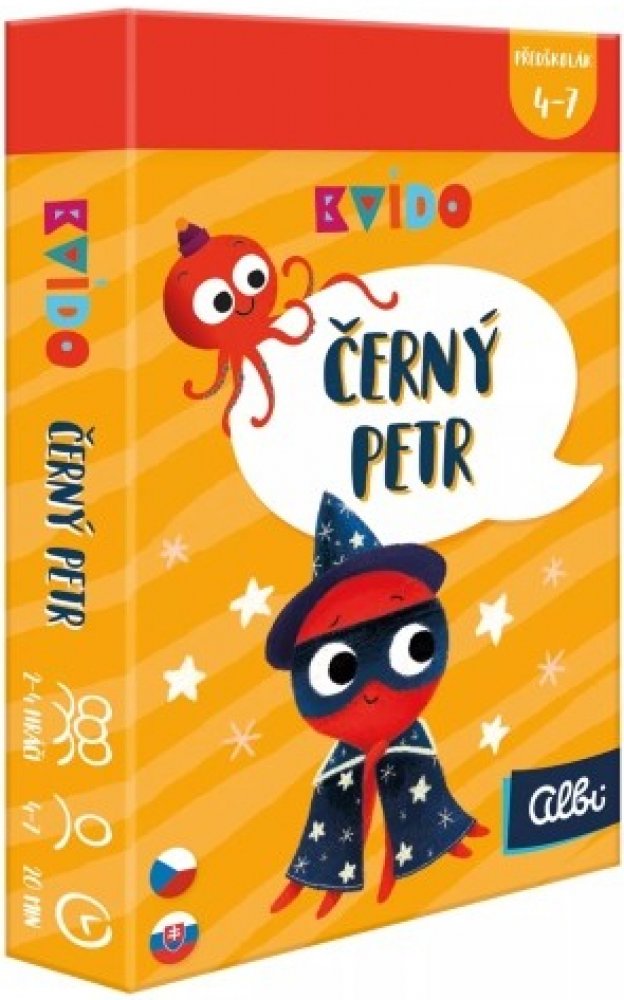Černý Petr - Zahrajte si klasickou karetní hru Černý Petr s krásně ilustrovanými Kvídovými kartami. Rozdejte hráčům stejný počet karet, vyřaďte ze svého balíčku dvojice a doufejte, že vám černý Petr nezůstane v ruce jako poslední. Hra rozvíjí paměť, koncentraci a umění prohrávat.Prší - Zahrajte si klasickou karetní hru Prší s krásně ilustrovanými Kvídovými kartami. Kvído Prší rozvíjí počítání, koncentraci a umění prohrávat.