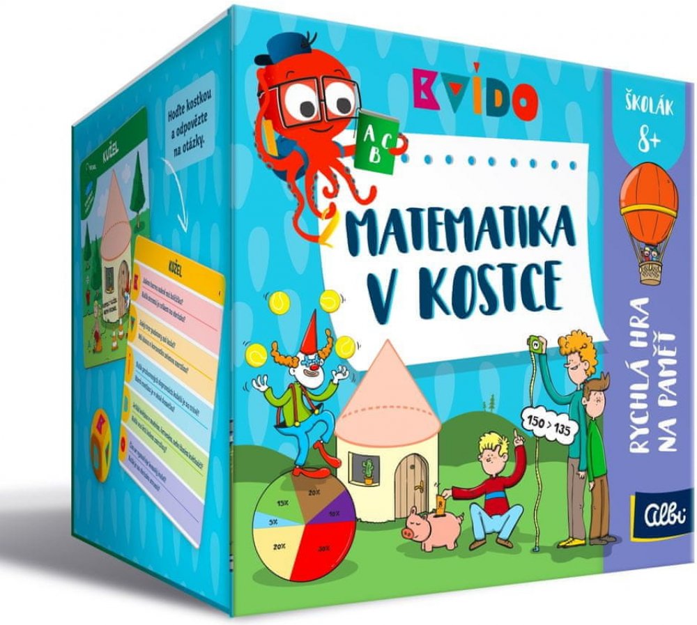 Hry Kvído V kostce navazují na oblíbené hry V kostce, ale tentokrát jsou propojeny s oblíbenou dětskou postavou chobotničky Kvída. Na každé ze 60 ilustrovaných karet jsou znázorněny informace z určité oblasti. Hráči mají patnáct vteřin, aby si toho z ní zapamatovali co nejvíce, a zvládli odpovědět na jednu až dvě vylosované otázky.