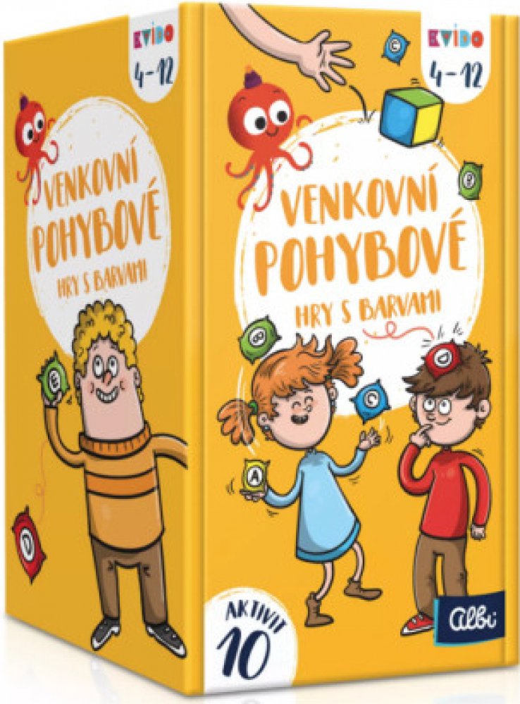 Kvído Venkovní hry Kvído – Venkovní pohybové hry s barvamiSkvělá sada pro zábavné sportování venku i v tělocvičně! Děti si s ní užijí barevnou vybíjenou, veverčí zásoby nebo veselou rozcvičku. Měkká kostka a 10 barevných sáčků s písmenky tvoří základ pro 10 připravených her – a s trochou fantazie si můžete vymyslet i vlastní.Jak se hraje?