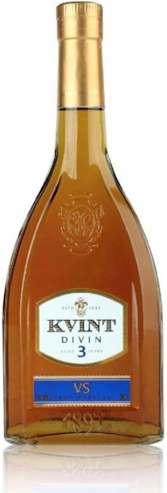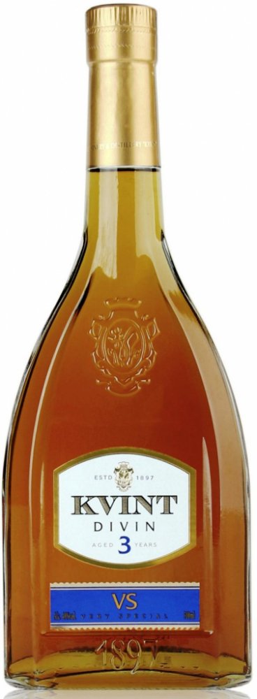 Brandy „KVINT VS“, vyráběná tradičním koňakovým způsobem z vybraných hroznů evropských a místních odrůd pěstovaných ve vinicích KVINT v Moldávii, zrajících nejméně 3 roky v dubových sudech. Harmonicky vyvážená, vyznačuje se vůní božských tónů, díky čemuž je ideální pro míchání koktejlů.