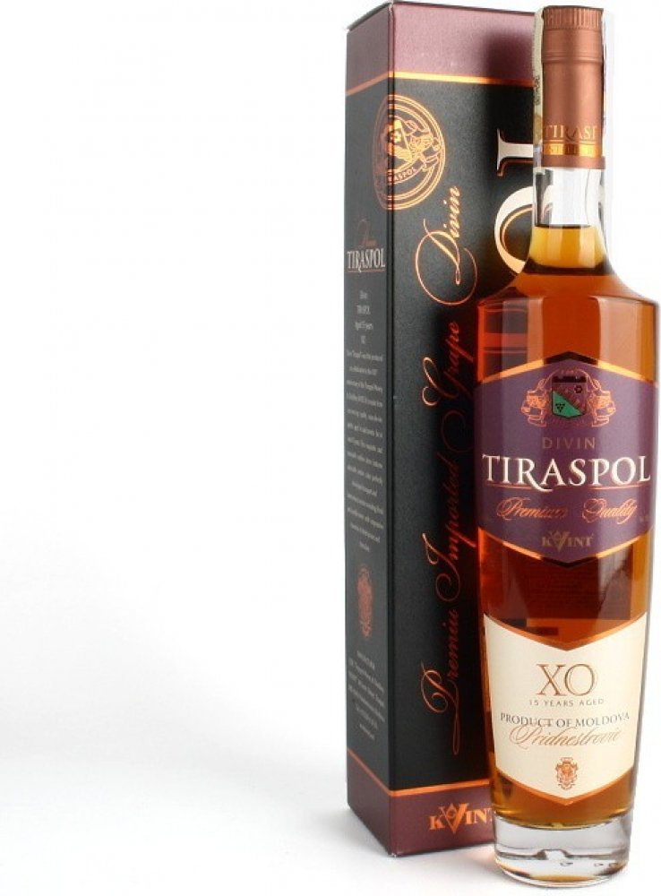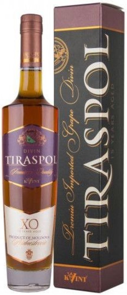 Jedinečná brandy KVINT TIRASPOL, vyrobená z nejkvalitnějších koňakových směsí, vyzrávajících nejméně 15 let v dubových sudech.