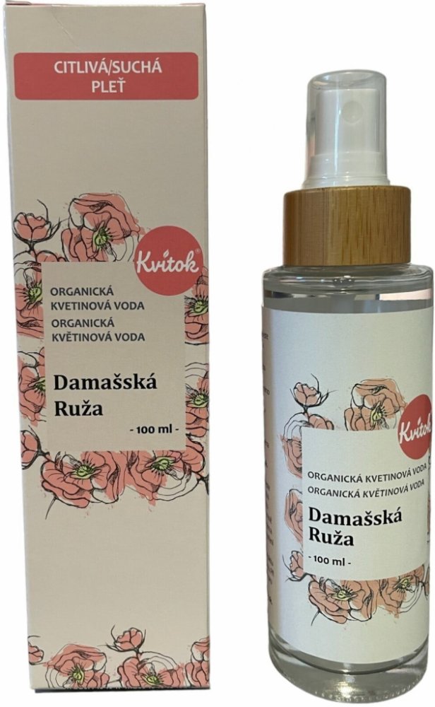 Kvitok Damašská Růže BIO květová voda 100 ml
