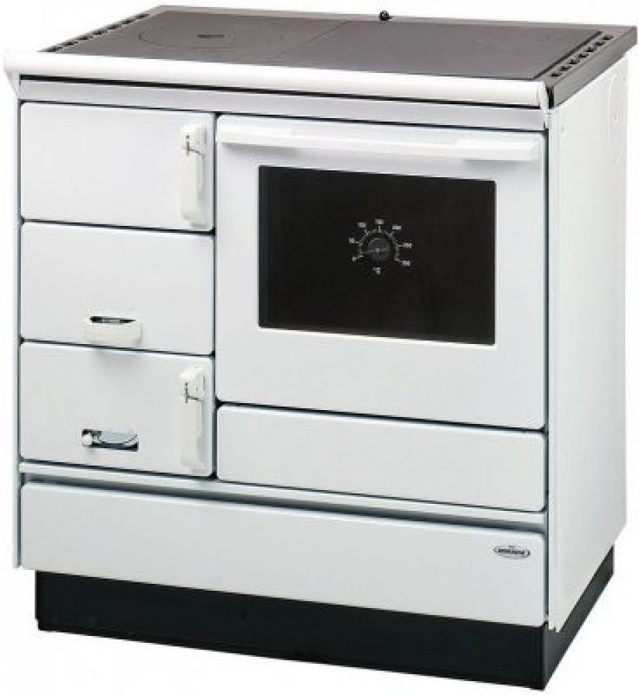 Sporák na tuhá paliva KVS Moravia VSP-9103.1102-OP - bílý levý, má plastové doplňky smaltovaný černý rám plotny, ocelovou dělenou, stříkanou plotnu. Vývod kouřovodu je zadní a nebo boční.