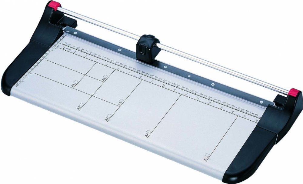 Kvalitní kolečková řezačka s pevnou kovovou základnou určena pro formát A3. Maximální tloušťka řezu 0,7 mm. Rotační nůž z nerezové tvrzené oceli.