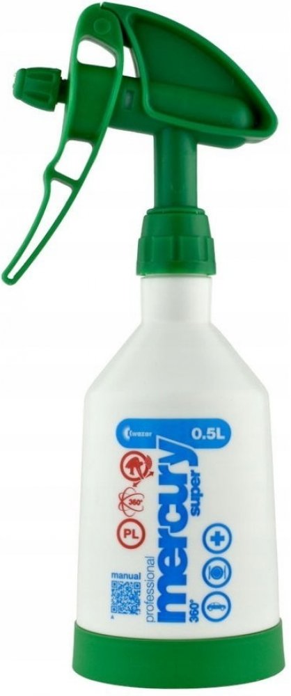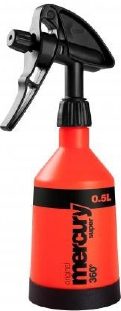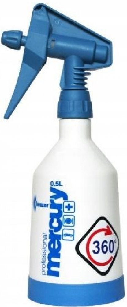 Rozprašovače Mercury Pro+ jsou ideálním řešením pro čištění a mytí automobilů, použití v autoservisech, nebo pro domácí použití. Řada postřikovačů Mercury Pro+ je určena pro použití chemických látek na malých až středně velkých plochách. Jedinečný design čerpadla Double Action umožňuje aplikaci chemikálií jak po stisknutí, tak uvolnění páky čerpadla. Díky tomuto řešení je postřikovač Mercury Pro+ účinnější než klasické jednoplášťové postřikovače.Mycí čerpadlo je vybaveno nastavitelnou tryskou, díky níž lze požadovaný stupeň atomizace kapaliny snadno nastavit na kontinuální proud. Rozstřikování kapaliny je velmi efektivní a nemá účinek vytváření velkých kapiček, což zaručuje rovnoměrné nanášení kapaliny. Další výhodou systému ostřikovačů je odolná nádrž s měřítkem v ml. Podobně jako u jiných výrobků z řady Pro+ v postřikovačích Mercury Pro+ jsou použita těsnění z materiálu Viton. Rozprašovače Mercury Pro+ se vyznačují zvýšenou odolností vůči kyselým a alkalickým tekutinám.Rozprašovače Mercury Pro+ jsou vybaveny stabilizační základnou, která také působí jako izolace nádrže od země. Stabilizační základna může být také použita k označení podložek s barvou, v závislosti na použití přípravků, jako jsou čisticí zóny apod. Nádrž postřikovače je vybavena lištou hladiny kapaliny. 360° postřikovače používají pružnou (silikonovou) sací trubici a filtr pro saturaci kapaliny, který zajišťuje, že postřikovač pracuje v každé poloze a s minimálním množstvím kapaliny v nádrži. Jsou ideální pro práci v těžko dostupných oblastech.