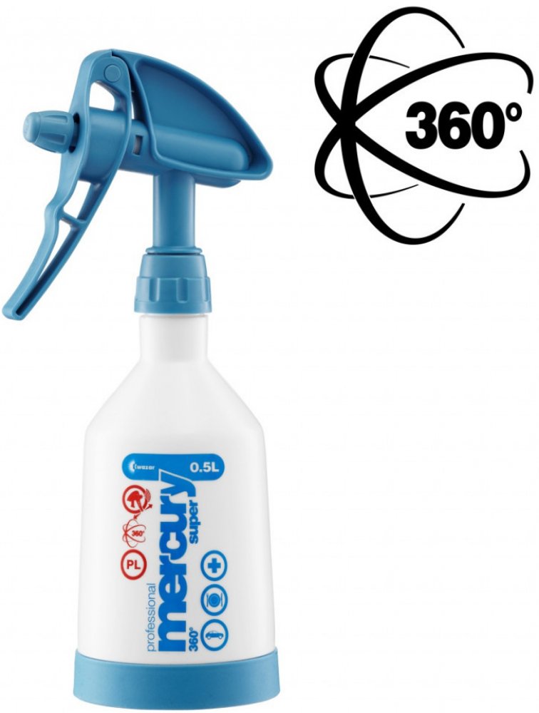 Kwazar Mercury Super Pro+ 360 je profesionální postřikovač s objemem 500 ml, navržený pro efektivní a snadnou práci s chemikáliemi. Díky inovativnímu systému funkčnosti v rozsahu 360° je ideálním pomocníkem pro aplikaci přípravků na malých až středně velkých plochách, ať už v automobilovém průmyslu, detailingových studiích, autoservisech, nebo i pro domácí použití.