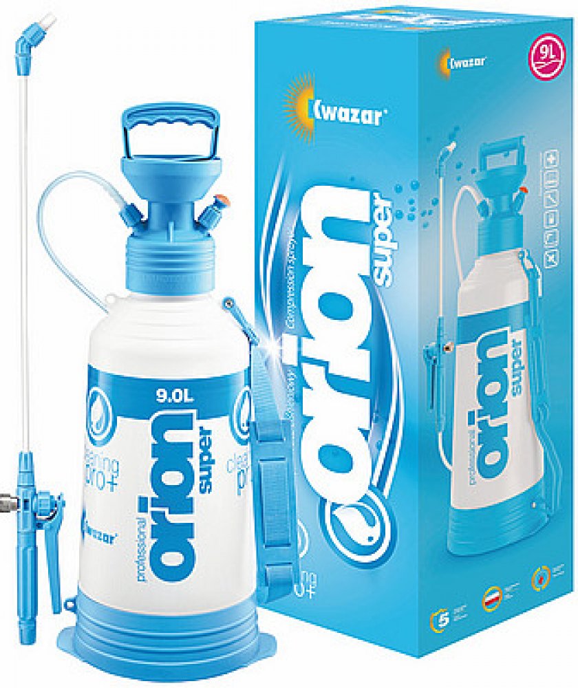 Tlakový postřikovač Kwazar Orion SUPER PRO+ 9 l Sprayer Široká škála kapacit postřikovačů od 3 l do 12 l vám umožňuje zvolit správné zařízení podle vašich potřeb. Postřikovače Orion Pro+ jsou navrženy pro práci na středních a velkých plochách. Jsou ideální pro dezinfekci různých typů povrchů, pro práci v automobilových myčkách, dílnách a v různých odvětvích průmyslu. Postřikovače Orion Pro+ použív...