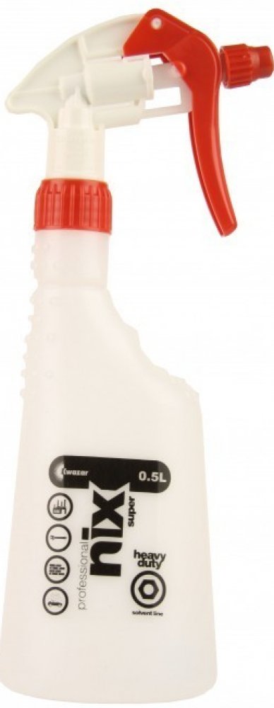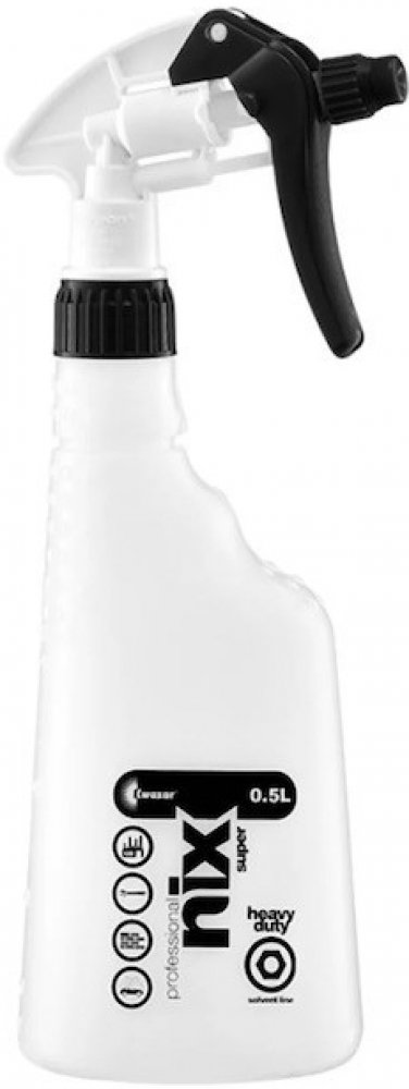 Postřikovač Kwazar Venus Nix HD 0,5 l Solvent Nix HD Solvent jsou postřikovače se zvýšenou odolností proti chemikáliím. Jsou určené k aplikaci agresivních přípravků (rozpouštědel) používaných mimo jiné i pro mytí automobilů. Těsnění Viton a konstrukce čerpadla zajišťují trvanlivost a delší životnost. Kapacita 0,5 l. Použití Odmašťování průmyslových ploch (stěn, podlah) Odstranění nečistot z olejů, tuků, uhelného prachu, dehtových skvrn, lepidla, vosku Čištění a odmašťování mechanických částí vozidel Čištění šroubů, nástrojů a nářadí Pro čištění automobilů před lakováním