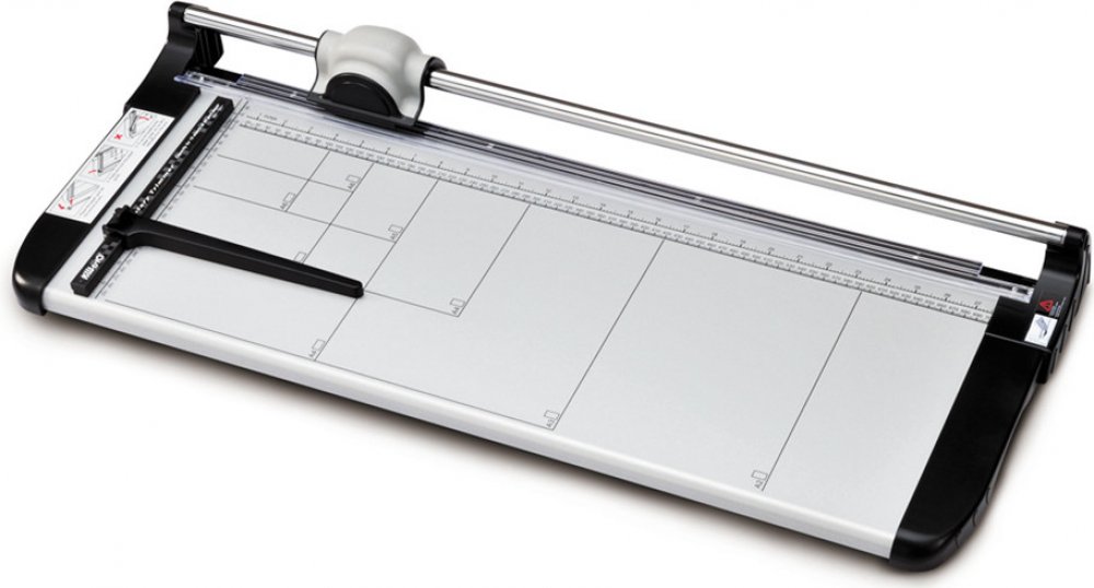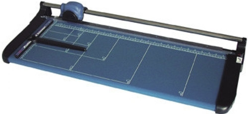 Kvalitní kolečková řezačka s pevnou kovovou základnou a řeznou hlavou umístěnou na kovové tyči.
