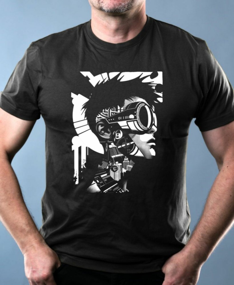 Kyber rebelka, bílý tisk. Budoucnost volá! Tato rebelka je napůl člověk, napůl stroj a celá umělecké dílo. S touto kombinací železa a odhodlání se nenechá ovládat žádným systémem – jen těmi, co má uvnitř. Vstup do éry cyberpunku!