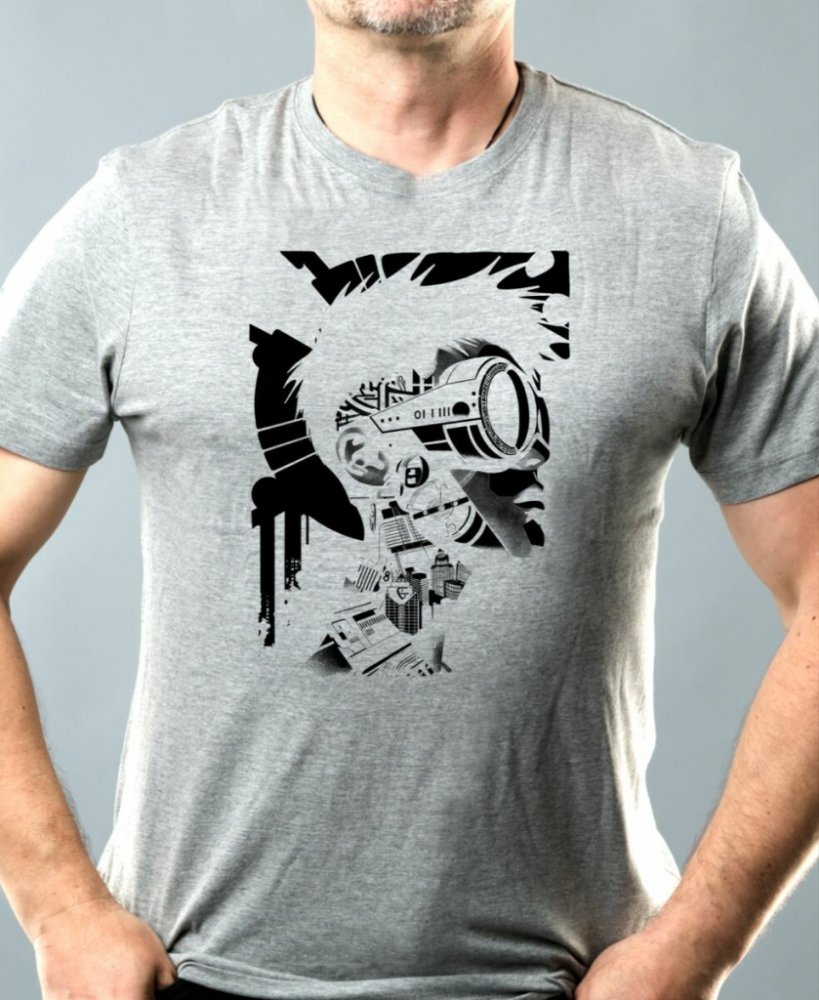 Kyber rebelka, černý tisk. Budoucnost volá! Tato rebelka je napůl člověk, napůl stroj a celá umělecké dílo. S touto kombinací železa a odhodlání se nenechá ovládat žádným systémem – jen těmi, co má uvnitř. Vstup do éry cyberpunku!
