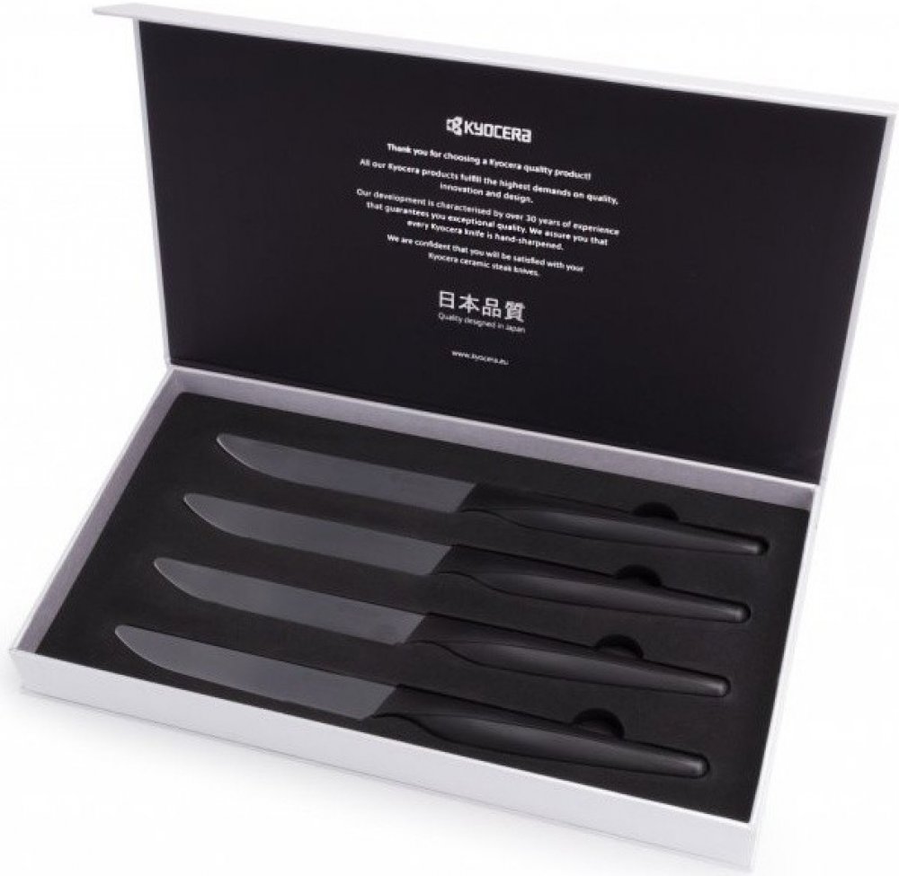 Dárková sada 4 ks keramických nožů na steaky Kyocera, černá
