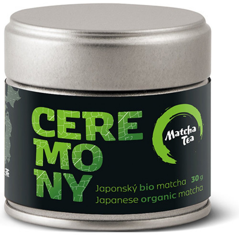 Plechová dóza Bio Matcha Tea Ceremony obsahuje 30 g čaje matcha.