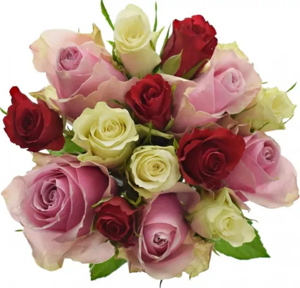 Kytice 15 míchaných růží MINTA 50cm